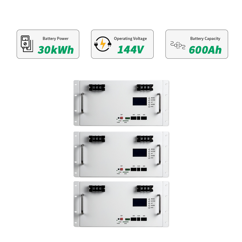 بطارية ليثيوم Lifepo4 بقدرة 600 أمبير في الساعة مخصصة بشكل أساسي للتطوير المخصص لمنتجات إمداد الطاقة الاحتياطية لتطبيقات التيار المستمر عالية الطاقة، لتوفير الطاقة الاحتياطية في حالات الطوارئ.يتكون نظام البطارية من 3 وحدات متوازية لتشكل نظام 48V600Ah